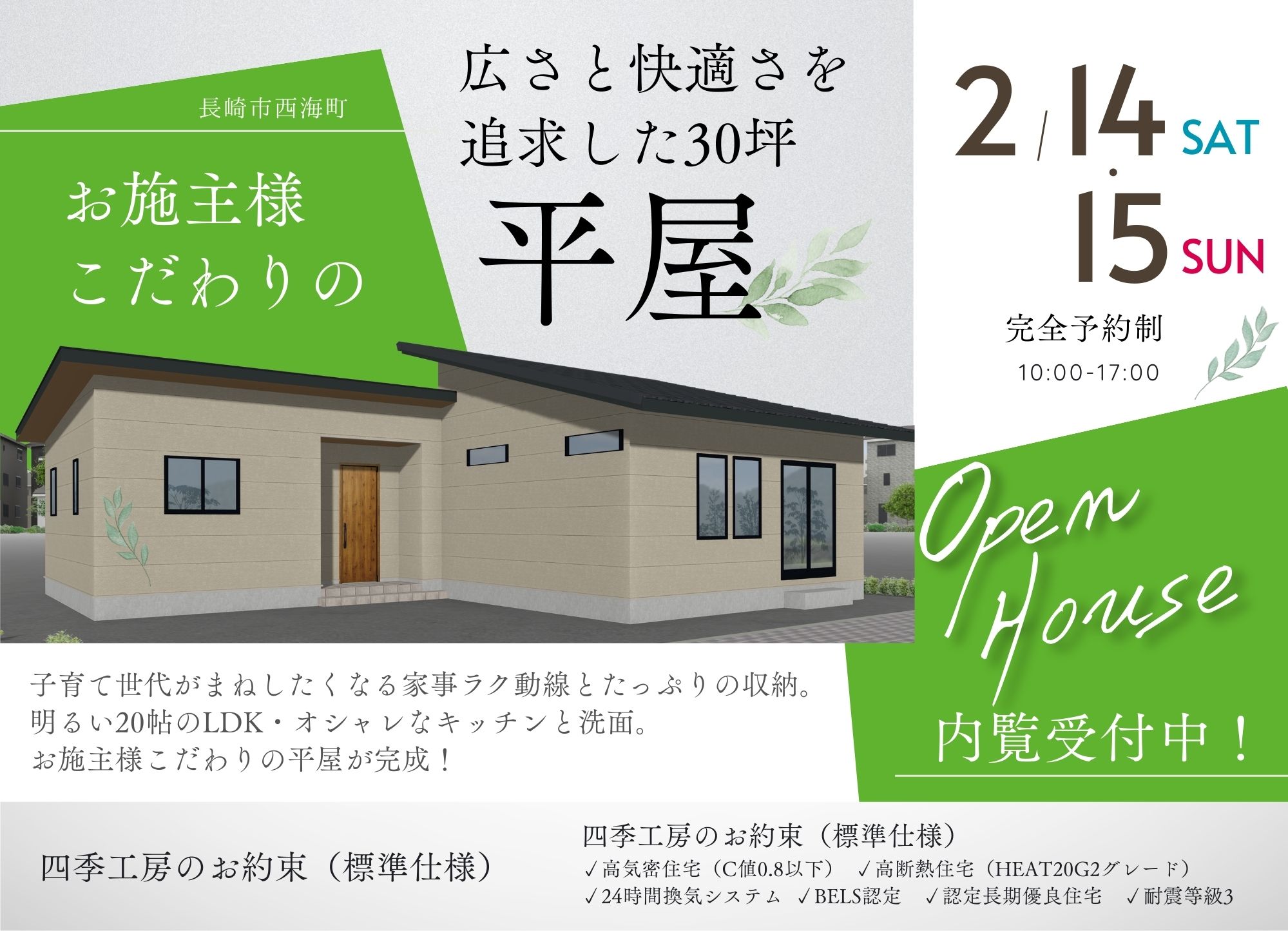 【2/14-15開催】お施主様こだわりの平屋・完成見学会(完全予約制)